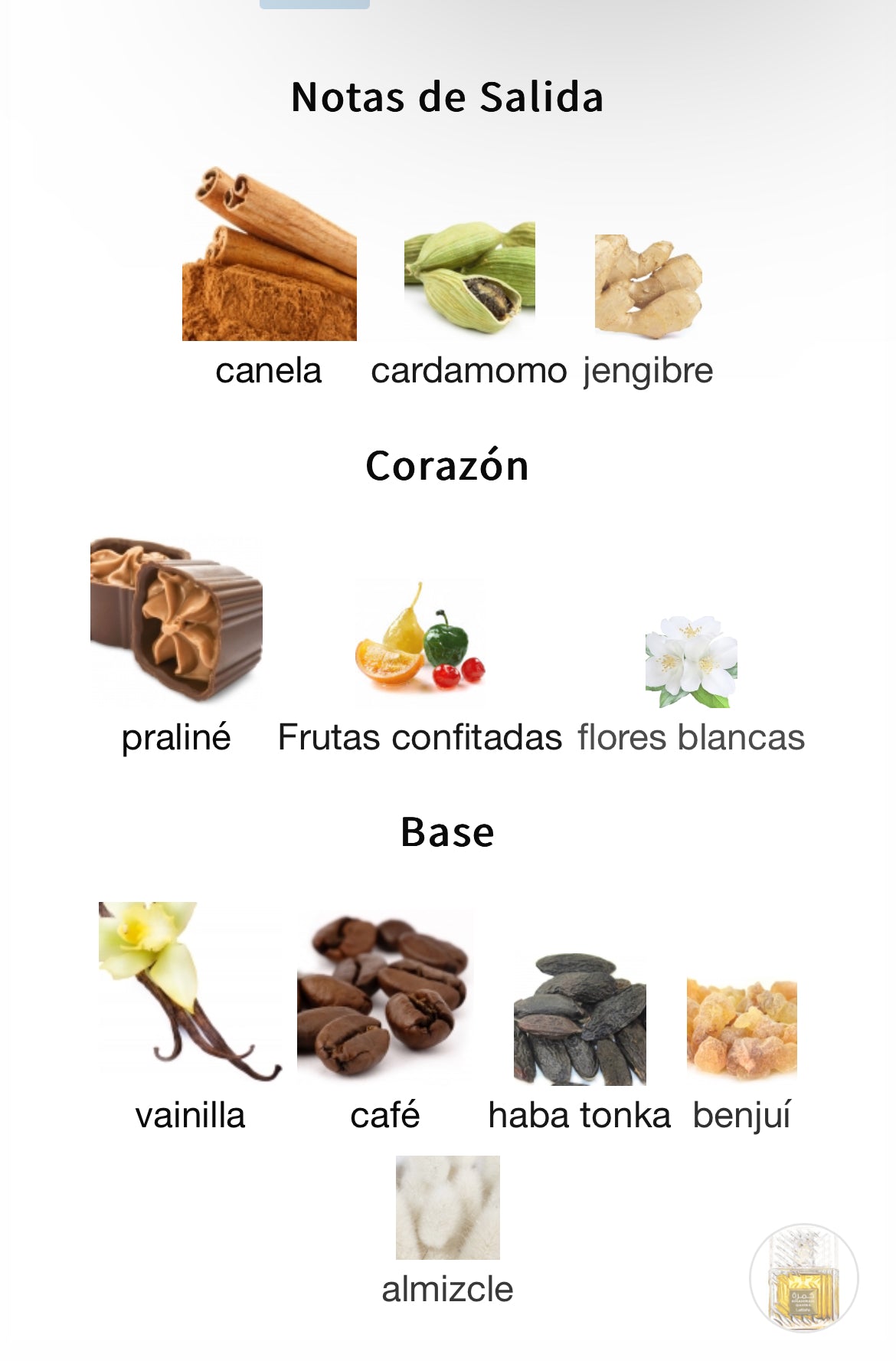 Khamrah Qahwa sigue la dirección de su antecesor, con marcadas notas dulces que dan la sensación de estas oliendo un postre de canela y praliné, pero con un nuevo aditivo, el café, que le da un carácter oscuro que lo diferencia de su hermano mayor.